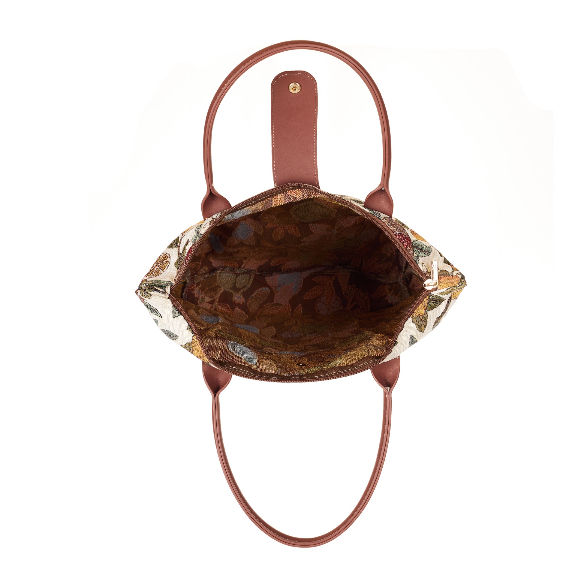 Compact and eco-friendly, portable shopping bag. This tapestry collapsible grocery bag piece opens up to provide ample space for your shopping trips and folds away for easy storage in your handbag