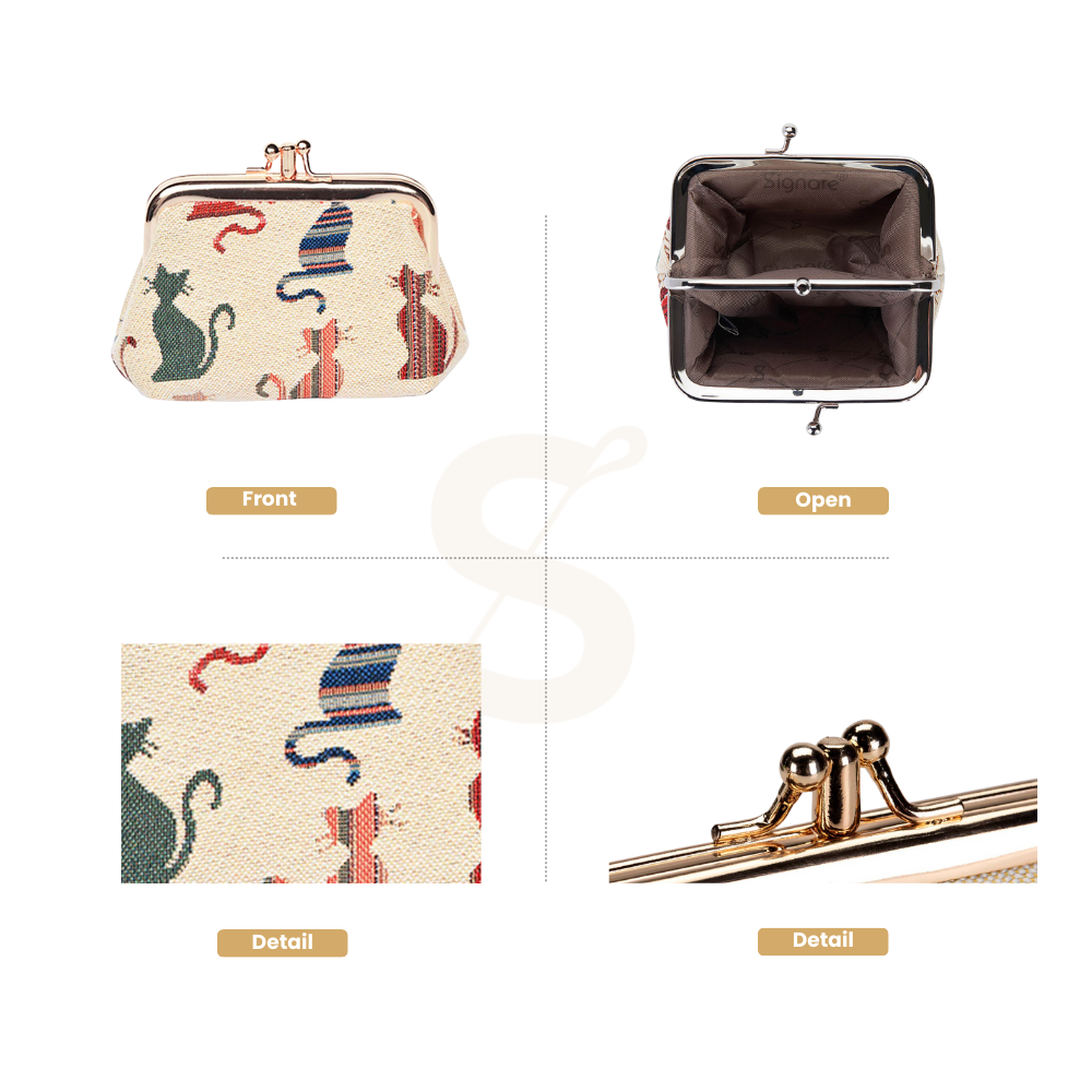 Cheeky Cat Coin Clasp Frame Purse Wallet