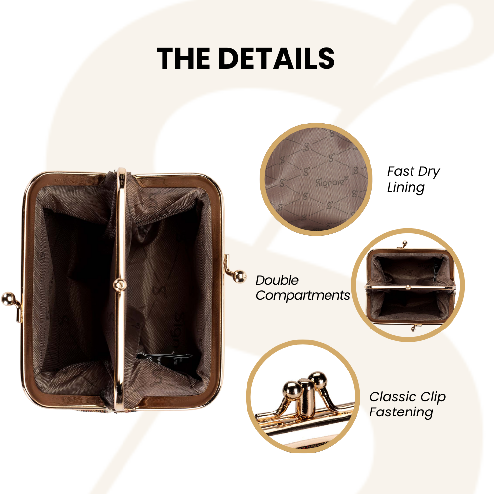 A fantastic little frame purse for keeping all of your coins together or store small cosmetic items. Perfect size to fit in your handbag.