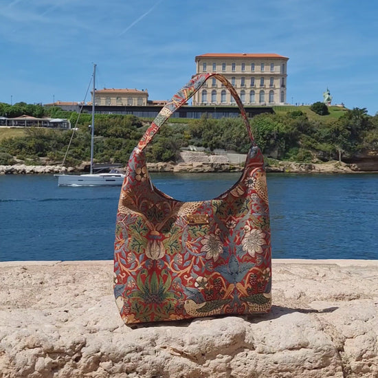 William Morris Strawberry Thief Red Hobo Handbag Shoulder Bag