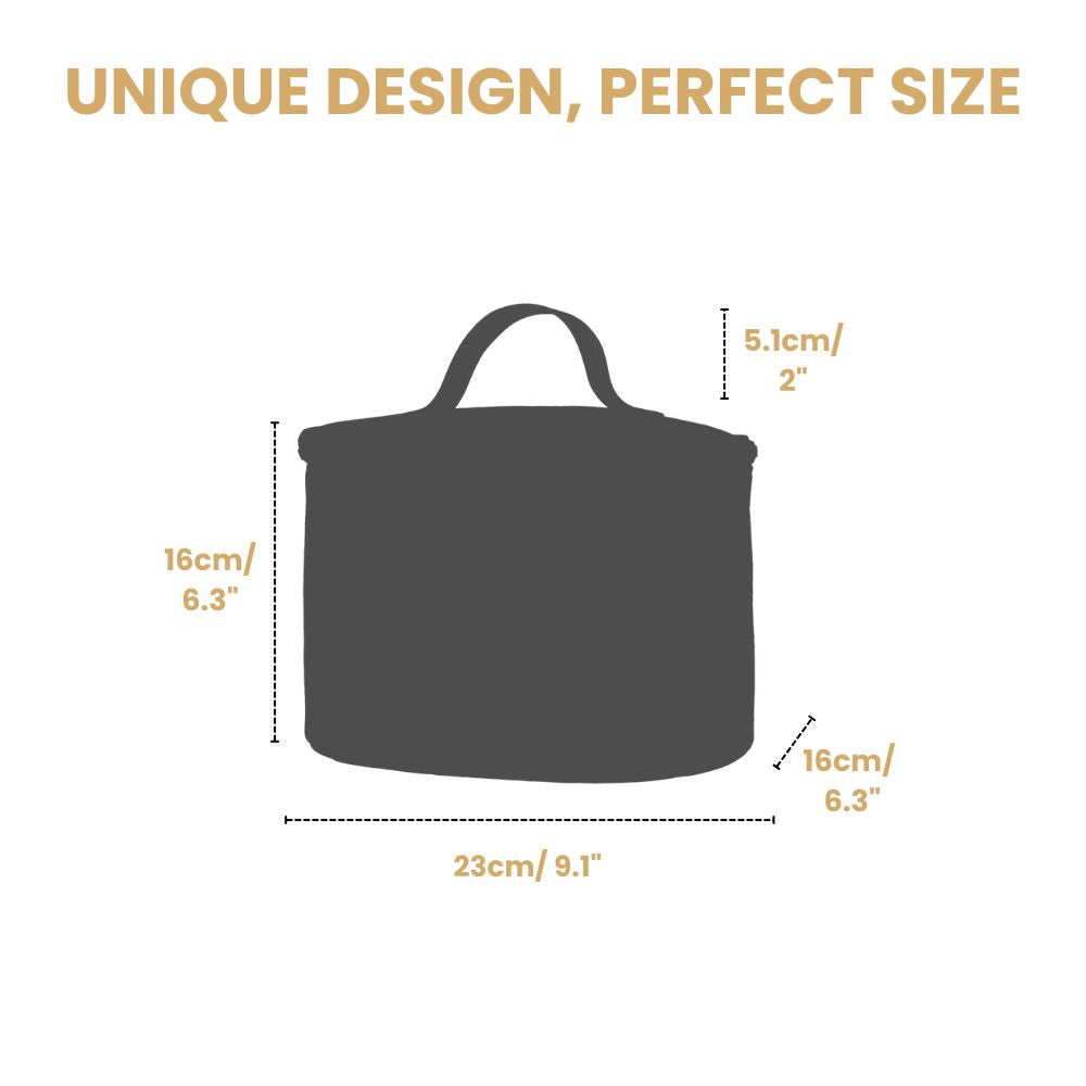 - Cosmetic storage bag with zip fastened around the lid of the case