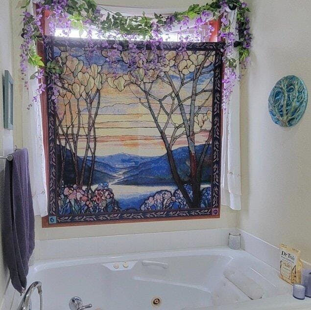 This gorgeous wall hanging is inspired by Louis Comfort Tiffany’s A View of Oyster Bay.
