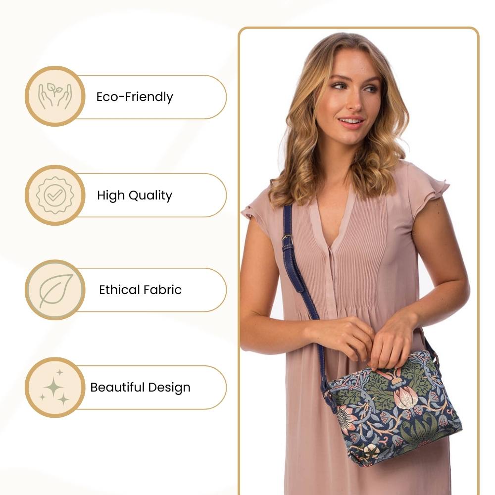 William Morris Strawberry Thief Blue Crossbody Bag